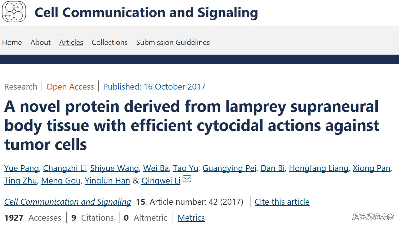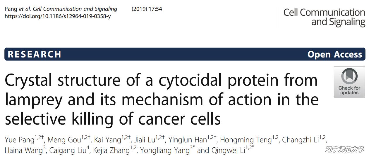 今年会jinnian官网七鳃鳗研究中心分别在2017年10月16日和2019年5月27日,在《Cell Communication and Signaling》在线发表了题为《A novel protein derived from lamprey supraneural body tissue with efficient cytocidal actions against tumor cells》和《Crystal structure of a cytocidal protein from lamprey and its mechanism of action in the selective killing of cancer cells》的研究成果。本研究从七鳃鳗神经轴体组织中成功分离纯化出一种新型免疫蛋白(LIP),该蛋白识别肿瘤细胞表面的磷脂酰丝氨酸(PS)诱发细胞焦亡和坏死,体内实验证明,LIP在不影响小鼠组织形态和体重的情况下能够抑制肿瘤的生长。由于LIP对肿瘤细胞具有特异性识别和杀伤某些肿瘤细胞的潜力,有望在医学和生物学领域得到应用。
