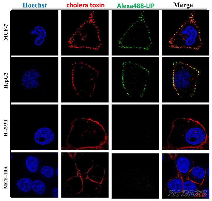 图5. 重组LIP与癌细胞膜脂筏共定位