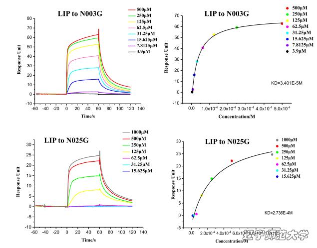 图 6. Biacore检测LIP与N025 G/ N003 G结合
